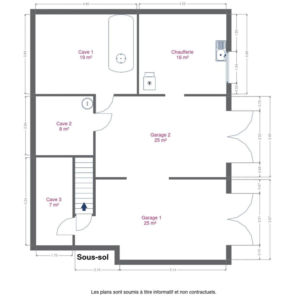 – au sous-sol : 4 caves et deux garages