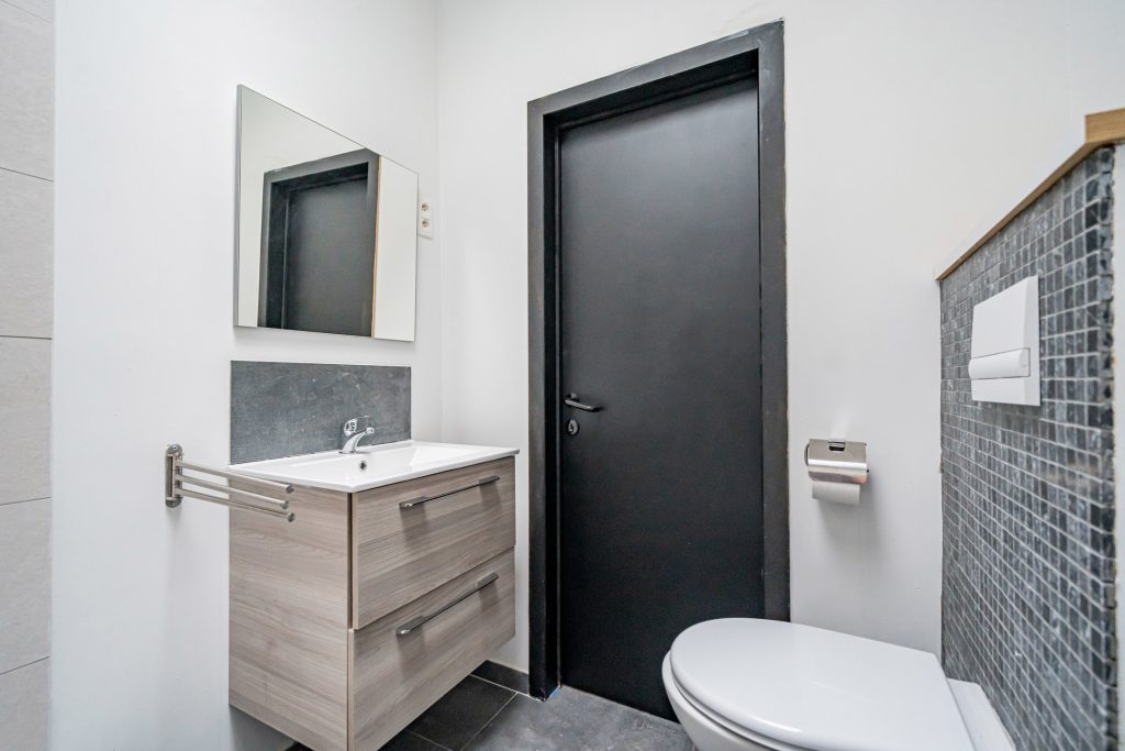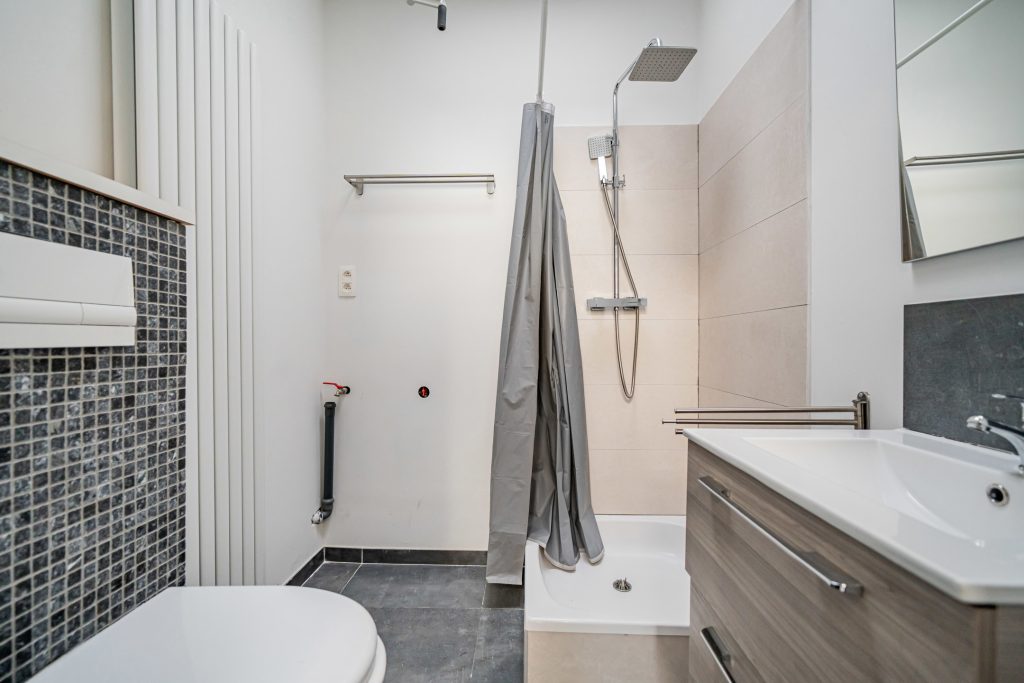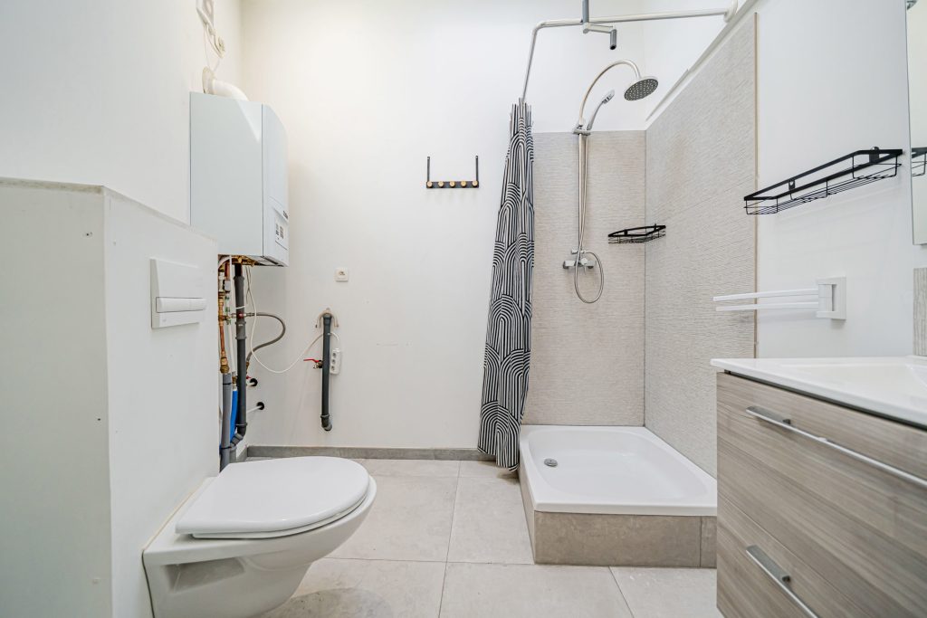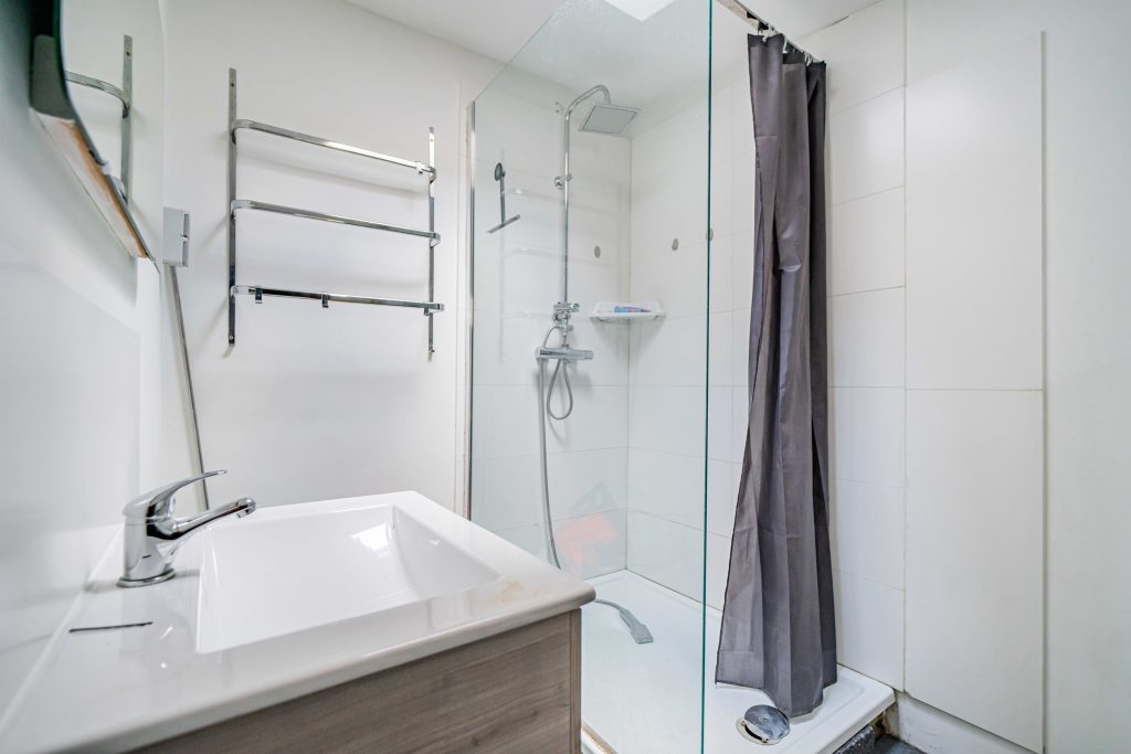 Salle d’eau moderne (douche, WC, lavabo)