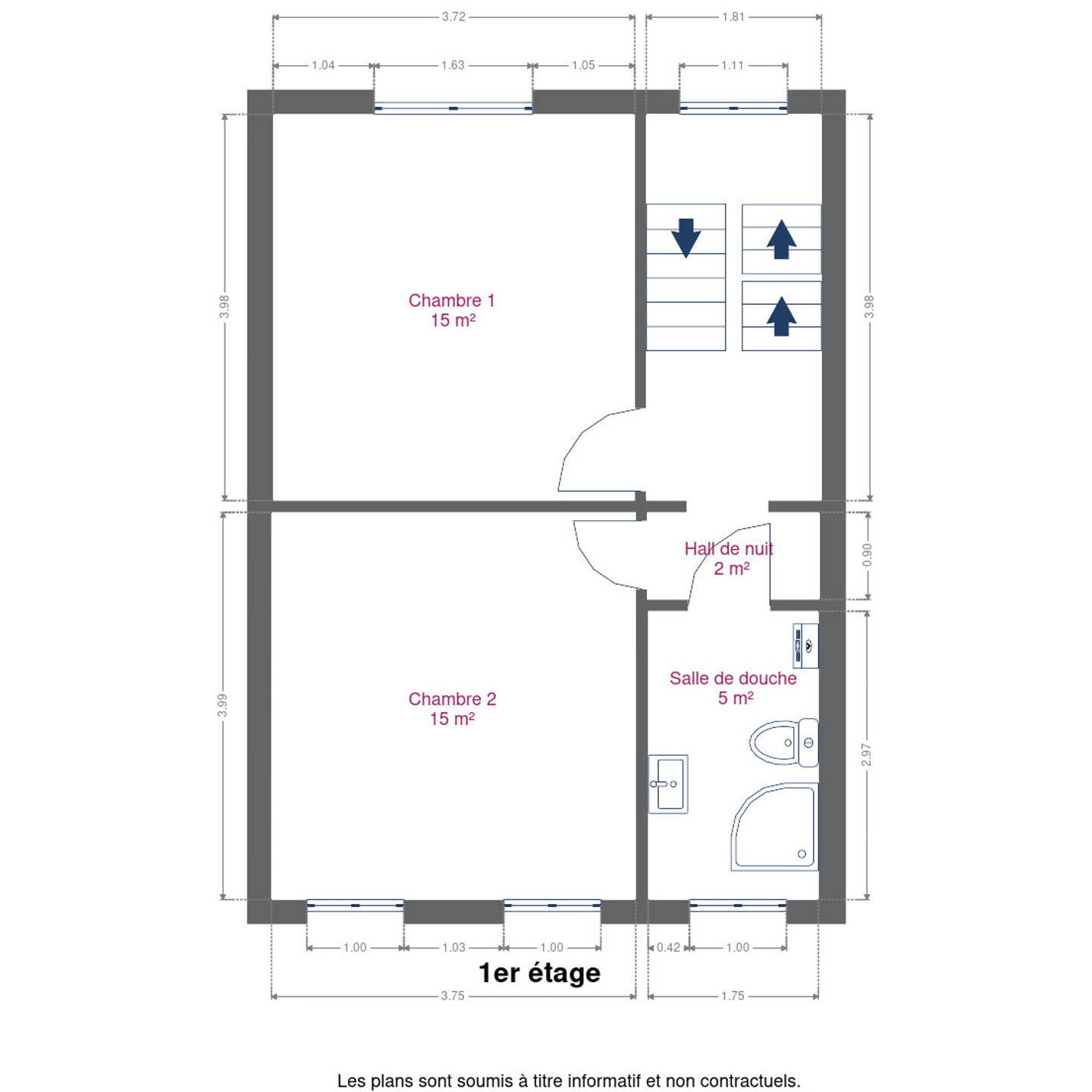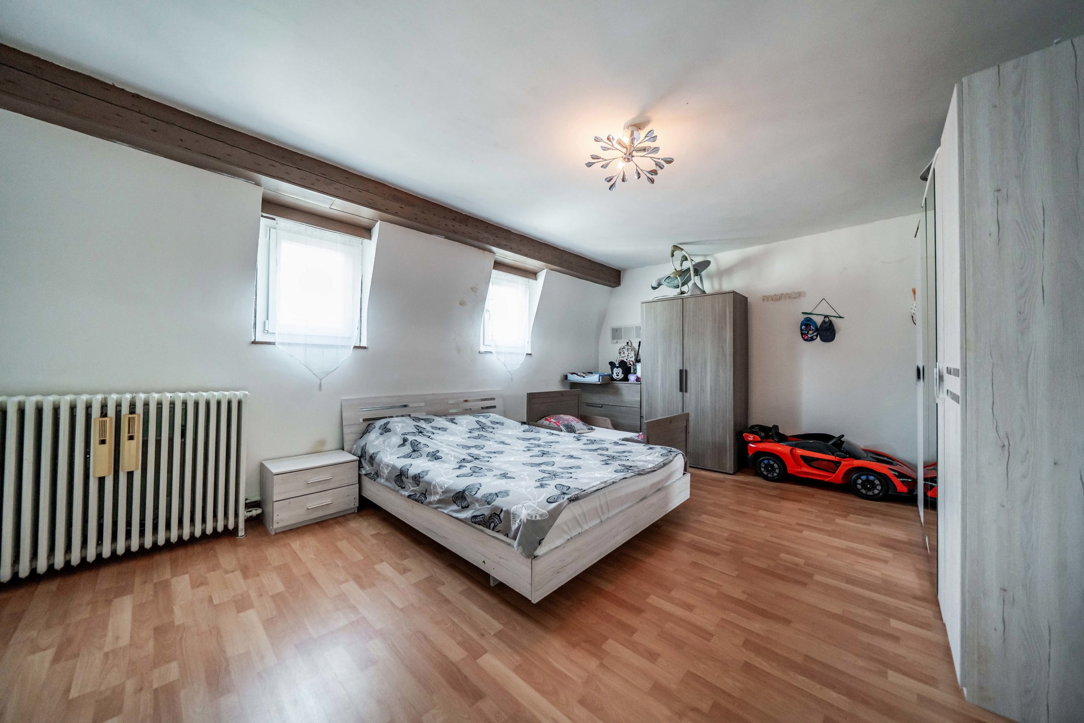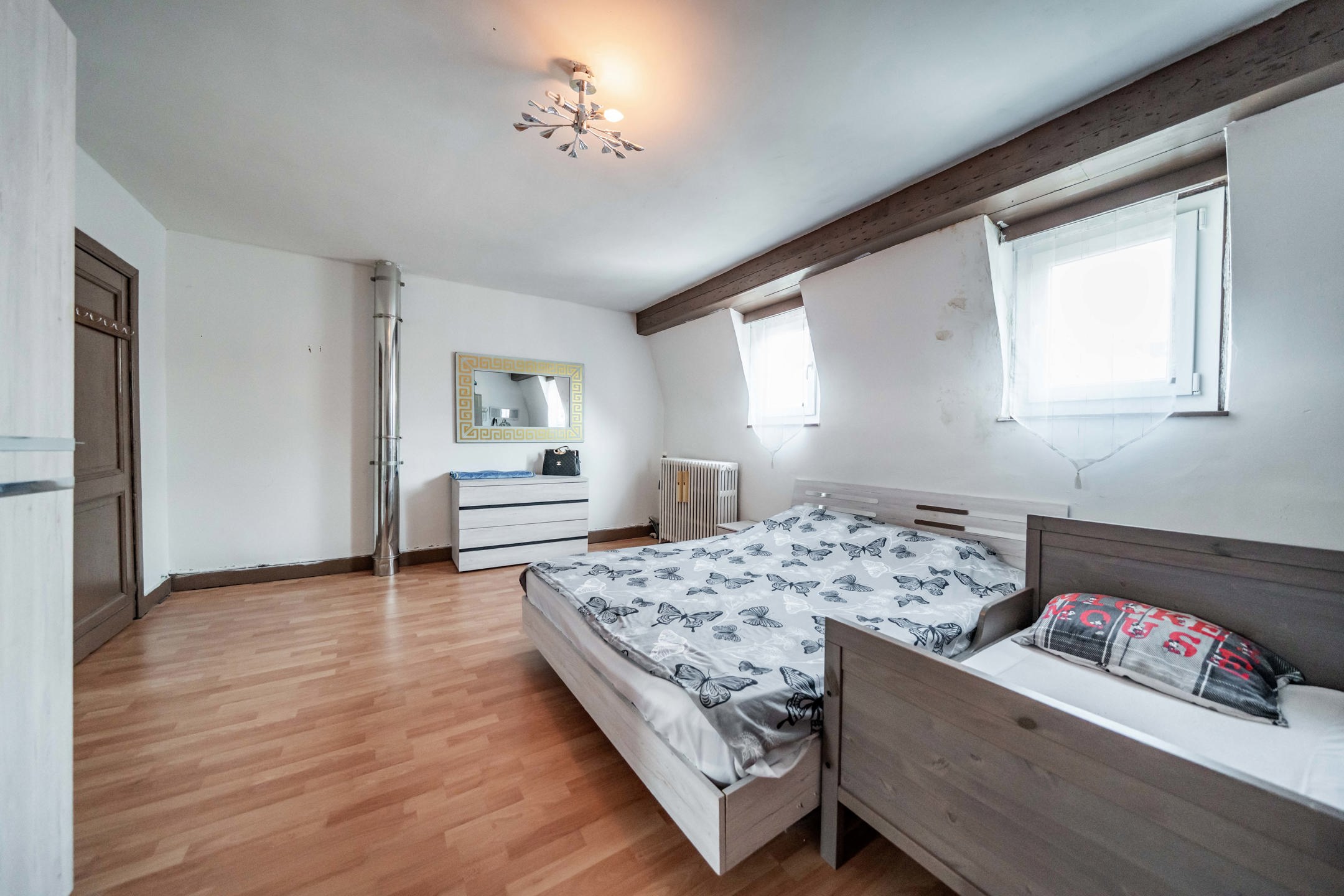 Au 1er étage, la maison dispose de deux belles chambres ainsi qu’une salle de bain fonctionnelle.