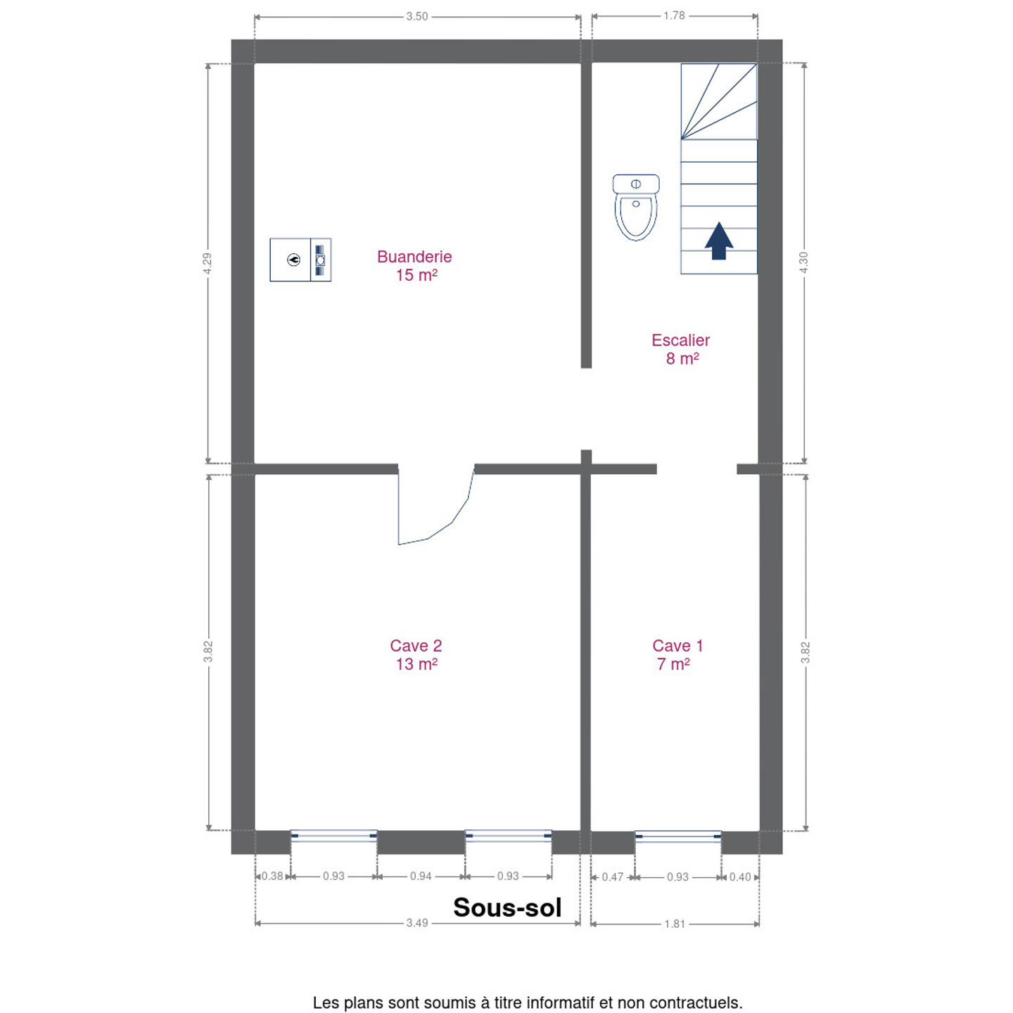 En sous-sol, vous bénéficiez d’un espace complet comprenant des caves, une buanderie et de nombreux rangements.