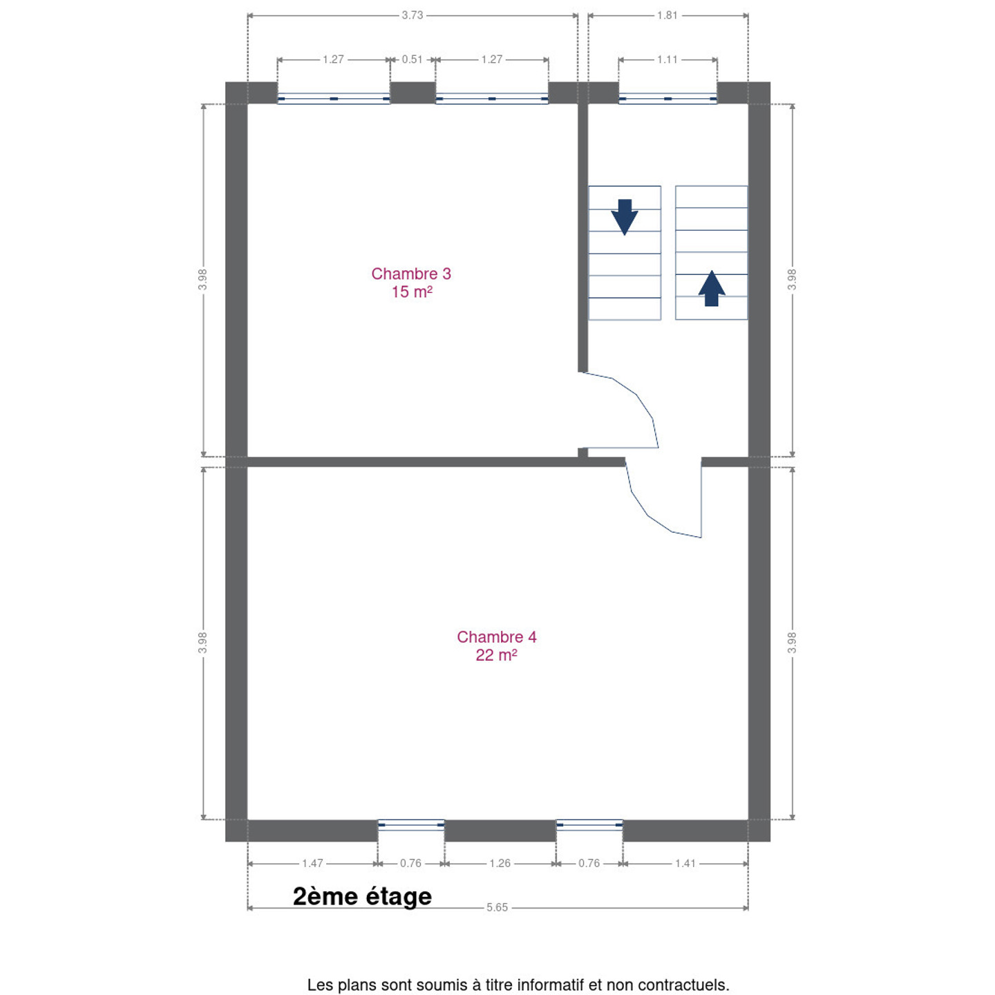Le deuxième étage abrite deux chambres supplémentaires.