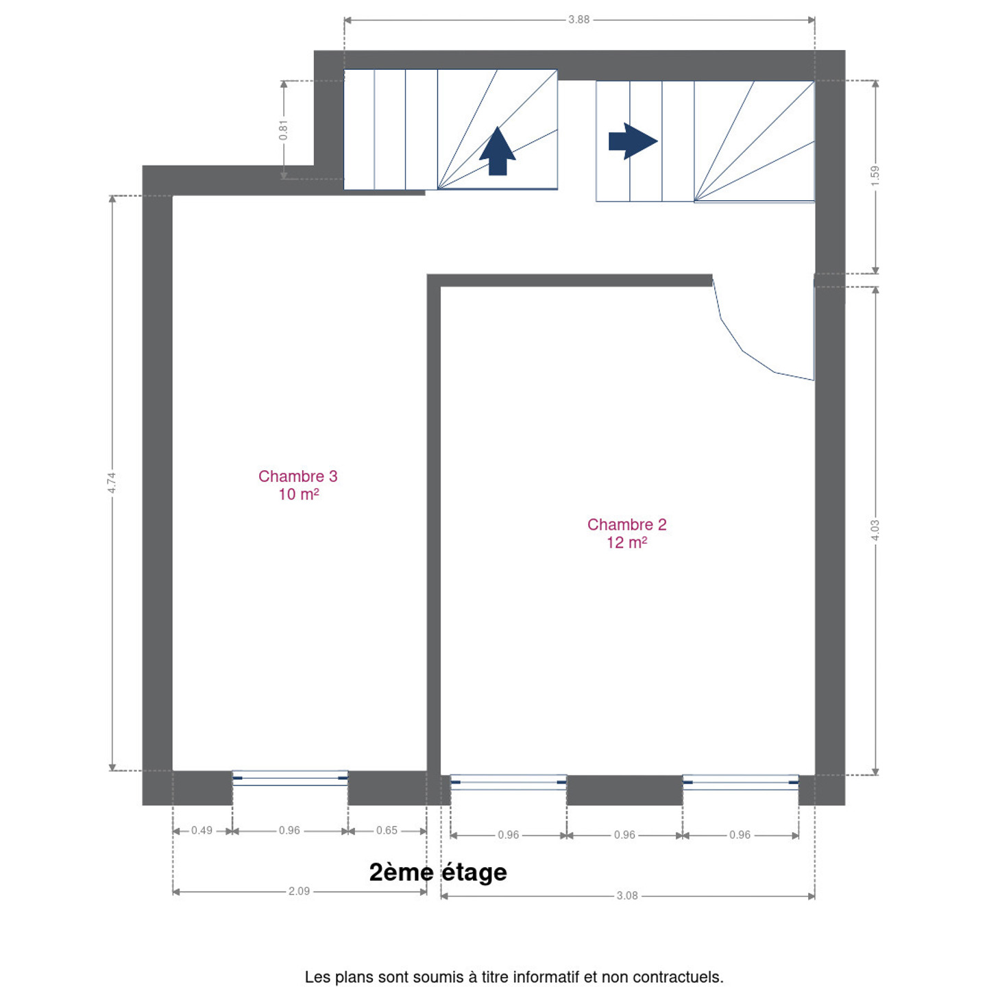 2e étage : deux chambres supplémentaires