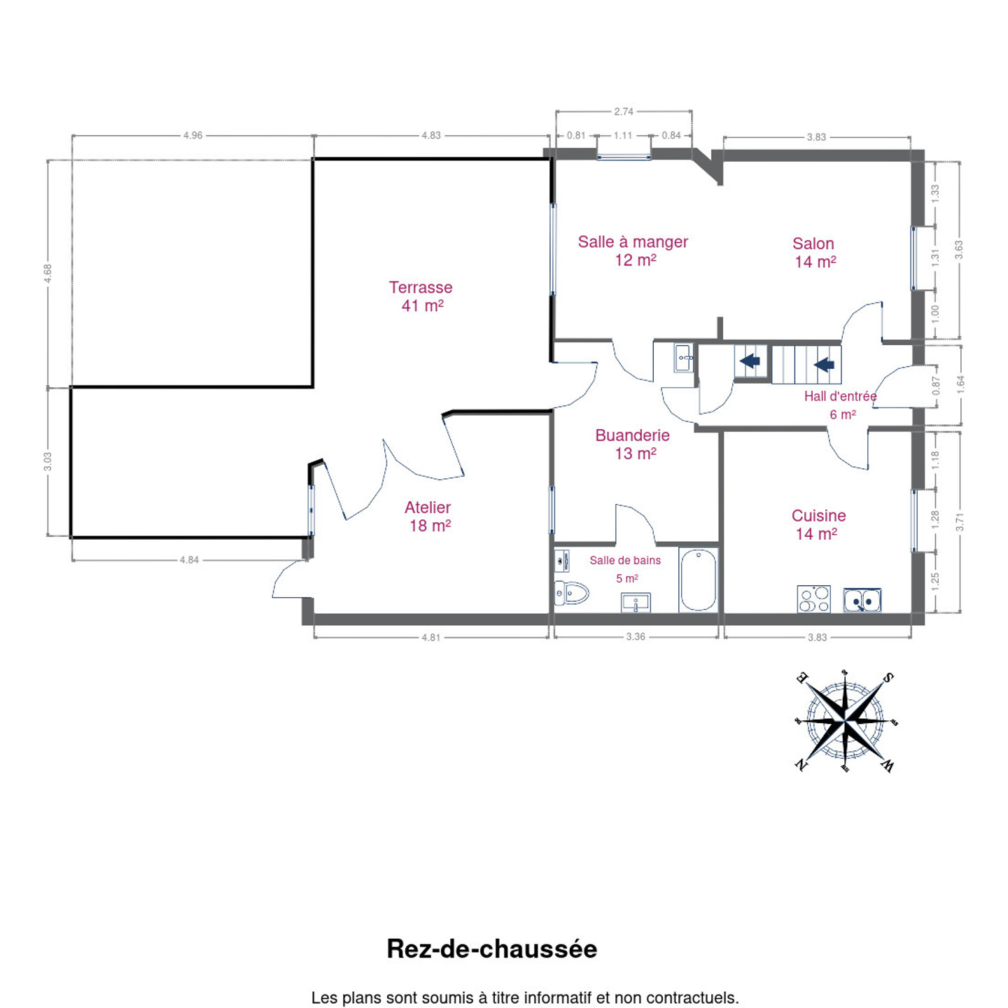 Au rez-de-chaussée, vous découvrirez une cuisine semi-équipée, un salon chaleureux, une salle à manger conviviale, une buanderie ainsi qu’une salle de bain.