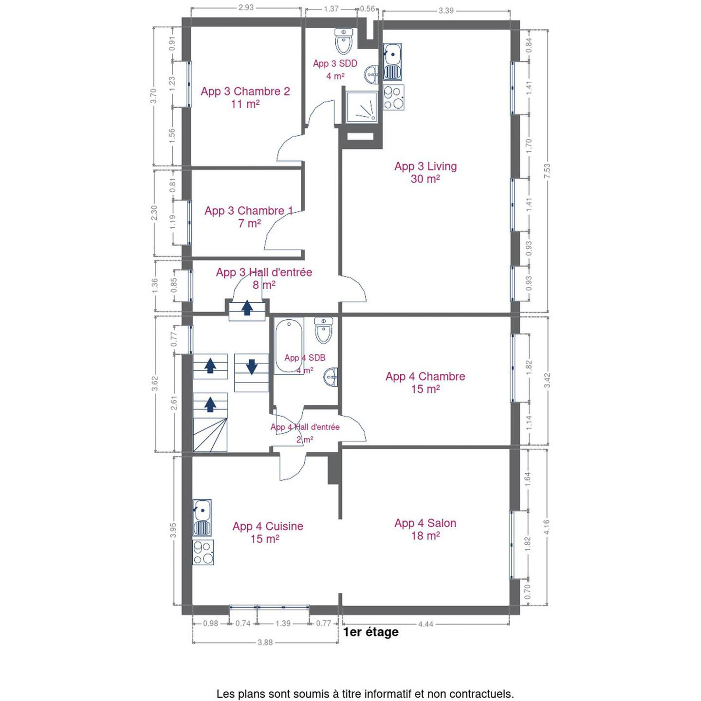 Au premier étage d’un immeuble de 6 appartements, cet appartement lumineux et spacieux offre un cadre de vie agréable, parfait pour un couple ou un investisseur.
