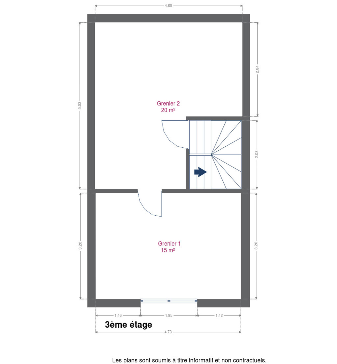 3ème étage: grand grenier aménageable