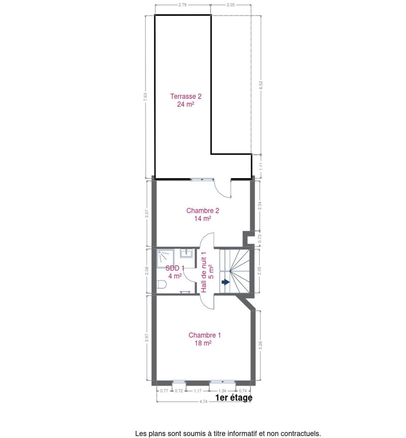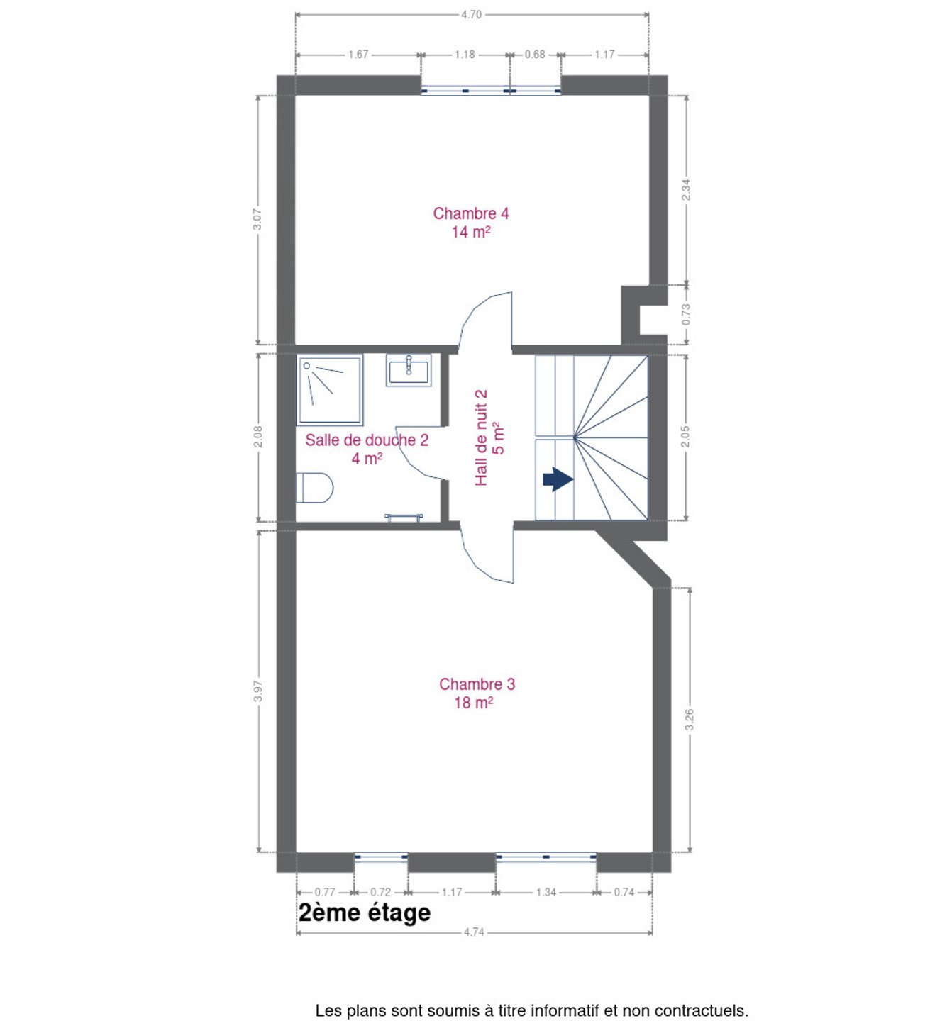 2ème étage: 2 chambres et 1 salle d’eau avec WC